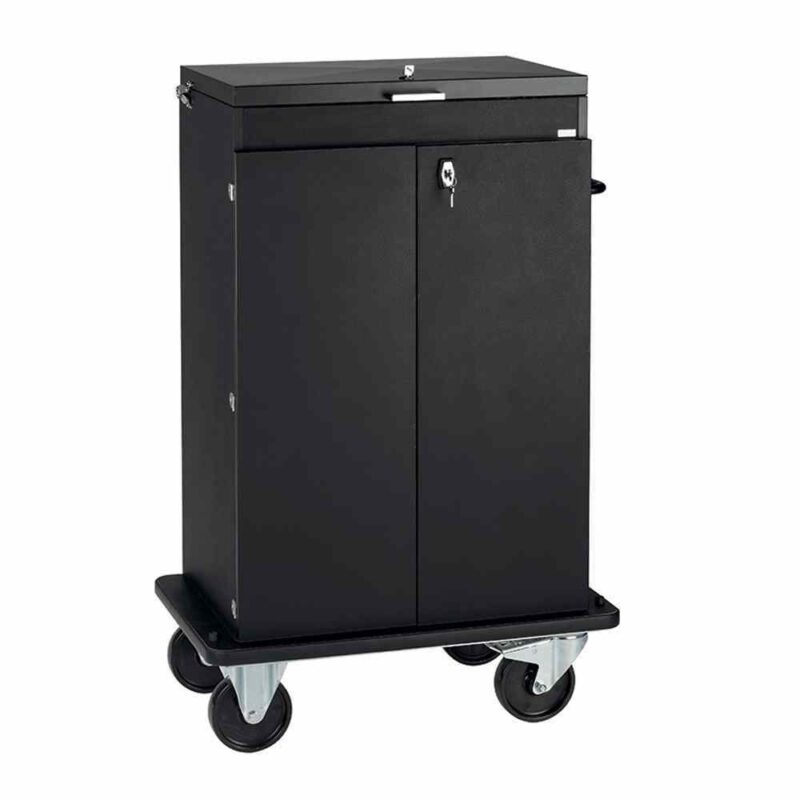 The Caddie B-PALACE, the minibar solution from the Signature Series, designed to elevate hospitality with customisable leather and textile panels, matching handles, locks, and castors. The Caddy B-PALACE Minibar Trolley offers a specially configurable internal structure for optimal functionality and style.