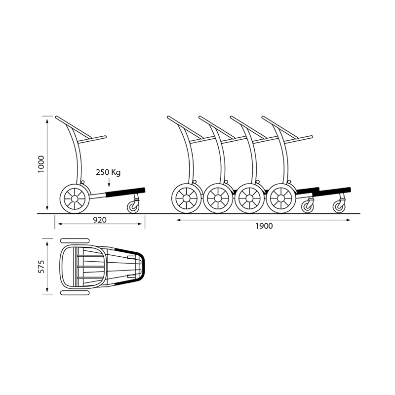 The caddie COLYSEE, ergonomically designed for smooth manoeuvrability with large rear rubber castors and swivelling front castors. Stackable for efficient storage, it’s your agile solution for various tasks.