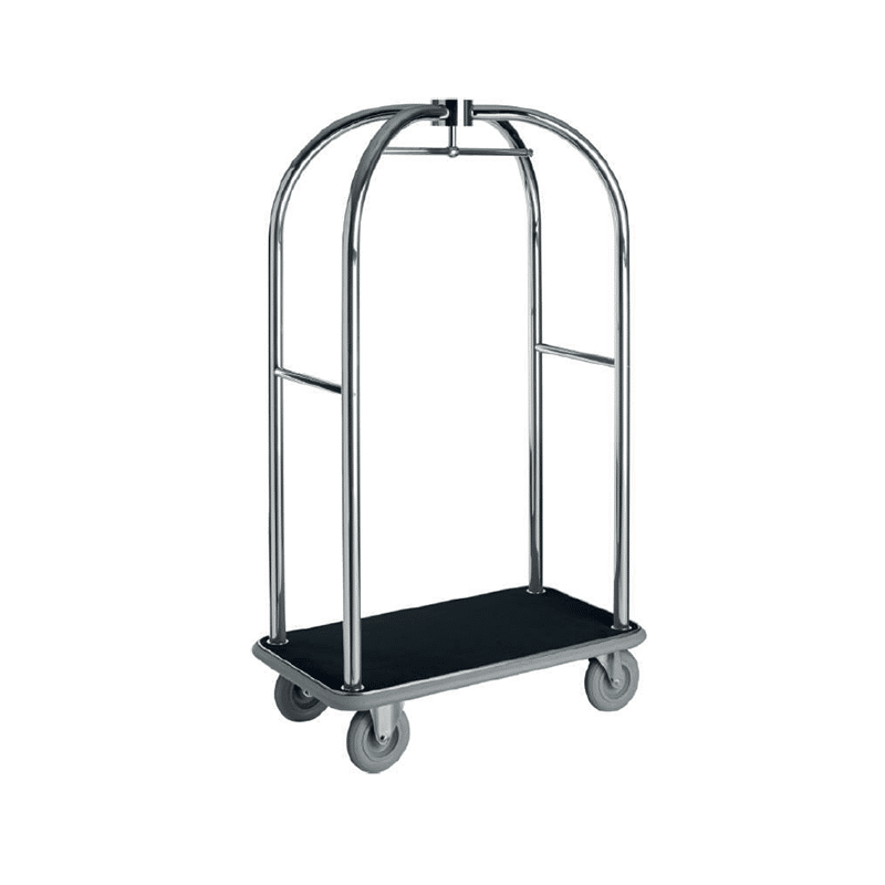 The TRANSBAG Smart, a compact stainless steel luggage trolley designed for efficiency. Its lightweight and airy design offer ease of use, blending seamlessly into any environment. Elevate efficiency with the practical TRANSBAG Smart from Caddie