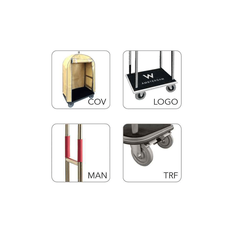 The prestigious Caddie TRANSBAG VIP luggage trolley, a seamless addition to any lobby, regardless of style. Available in chrome (CR) or brass (BR) finish, it offers versatility to complement any decor. Choose from four base carpet colours and explore optional features to tailor it to your needs. Elevate your guests’ experience with this iconic essential, designed for both functionality and elegance.