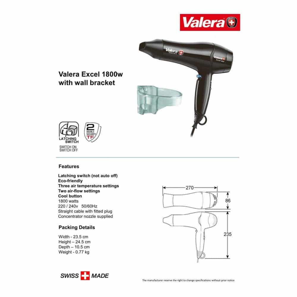 The Swiss made Valera Excel 1800w Hairdryer is an ultra lightweight yet powerful hair dryer.